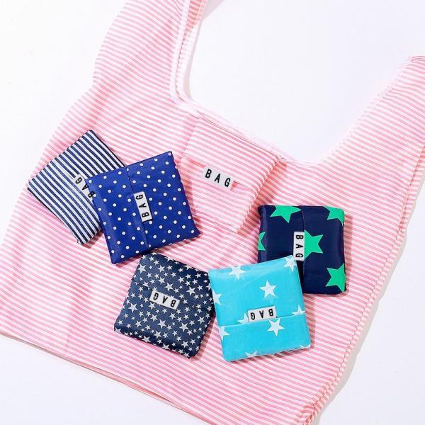 エコバッグ 折りたたみ マイバッグ ショッピングバッグ レジバッグ コンパクト 買い物 旅行 折り畳み ドット ボーダー スター 星柄 おしゃれ
