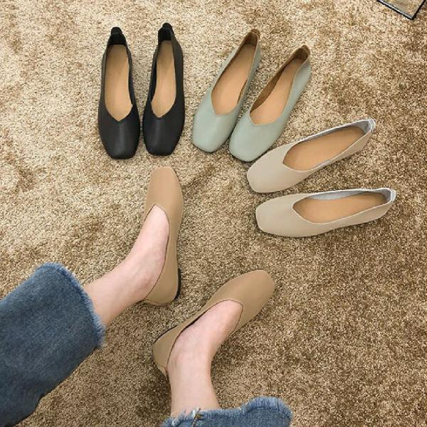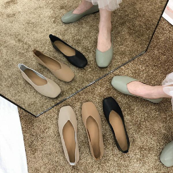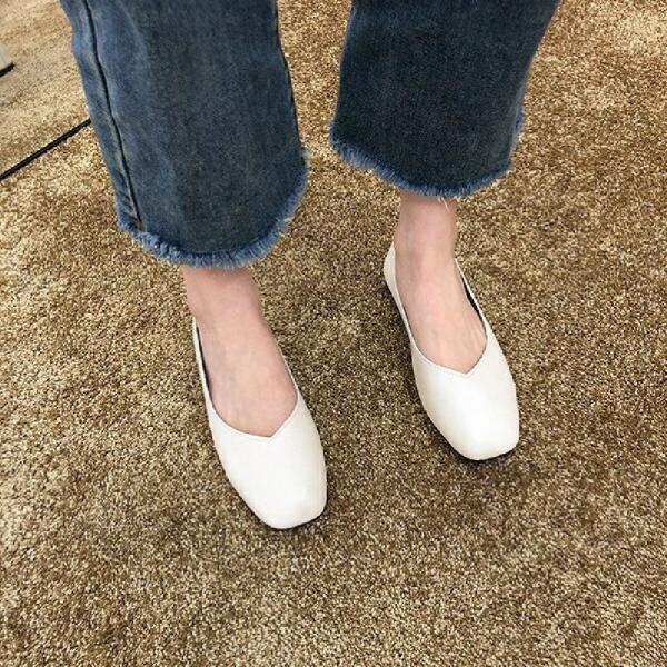 パンプス 靴 ぺたんこ スクエアトゥ ローヒール フラットシ