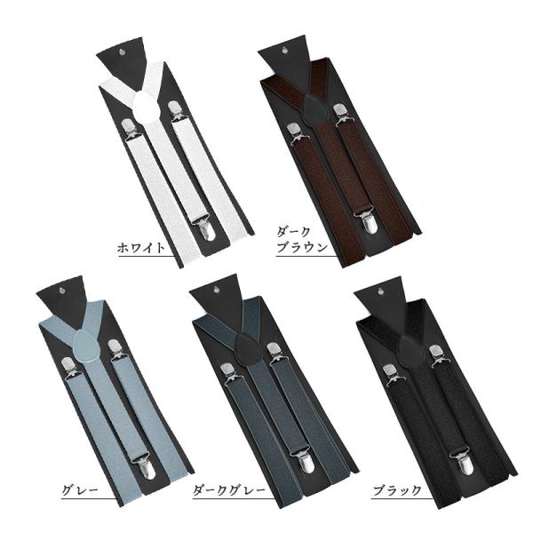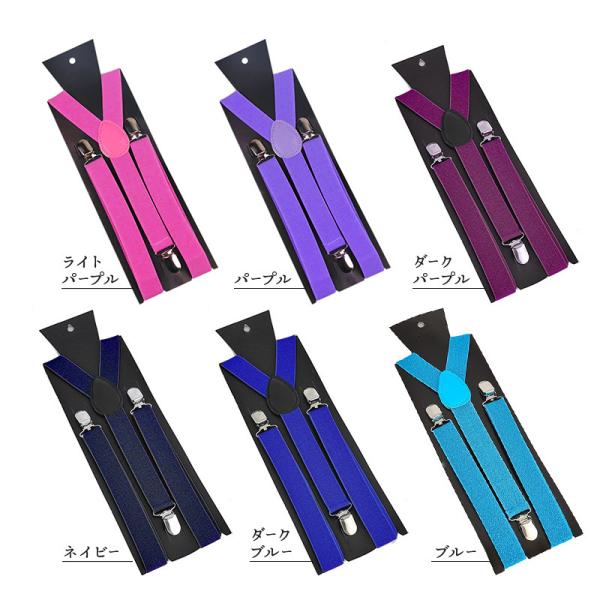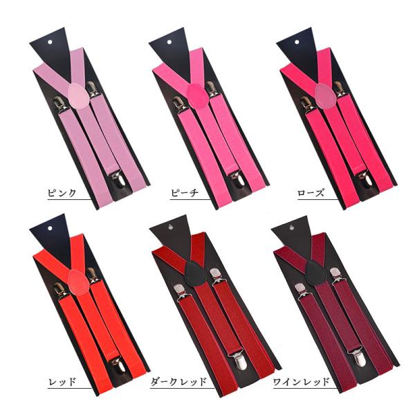 サスペンダー レディース メンズ 男女兼用 吊りバンド ファッション小物 3点留め 長さ100cm 幅2.5cm 赤 黒 白 青 紫 ピンク 茶 グレ