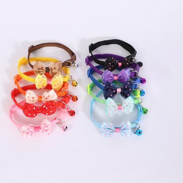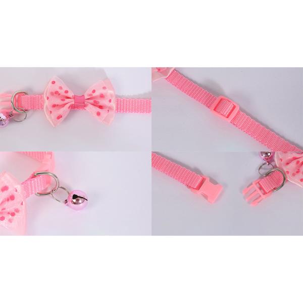 ペット用首輪 猫 小型犬 ネコ イヌ ペット用品 バックル式 水玉 リボン 鈴付き Dカン 調整可能 軽量 かわいい おしゃれ いぬ ねこ