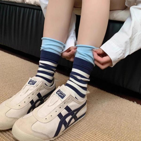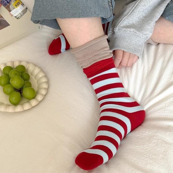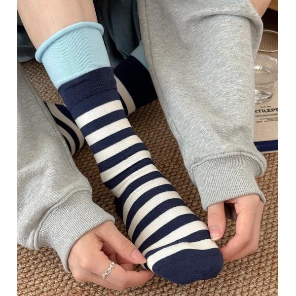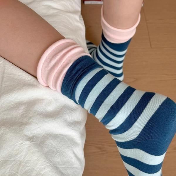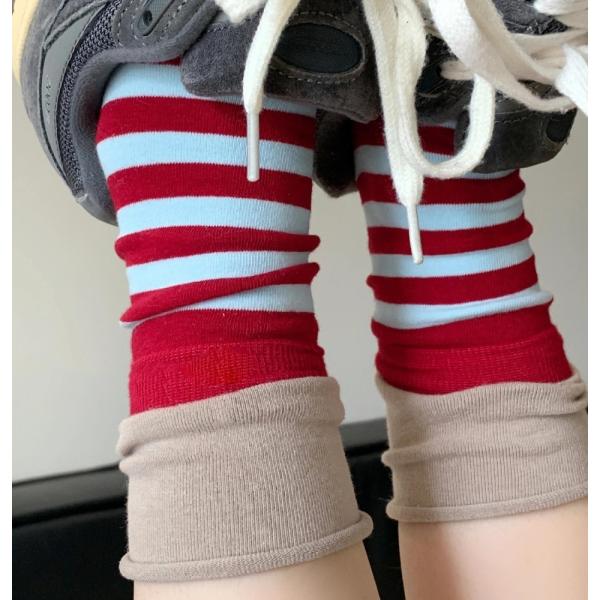 ソックス 靴下 くつ下 レディース 女性 スリークォータース フェイクレイヤード レイヤード風 重ね着風 ボーダー しましま ピンク カーキ イエロー