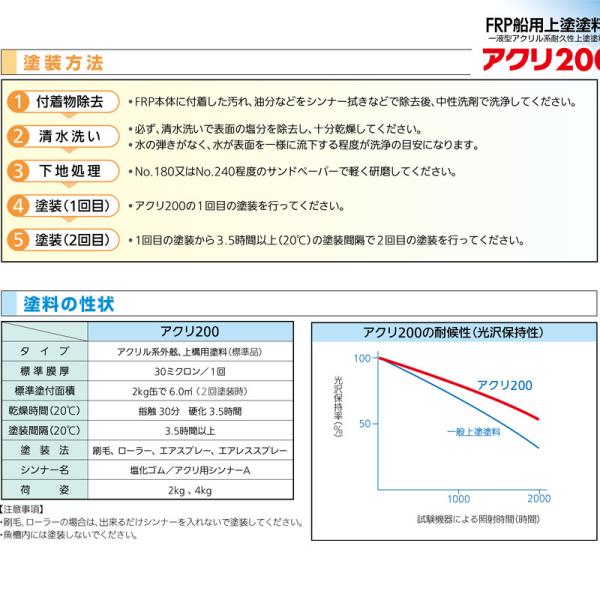 船上塗 塗料 アクリ200 4kg 1液型アクリル系 耐久性 上塗り塗料 FRP面 外舷 キャビン など 船上 中国塗料 Dワ 代引不可