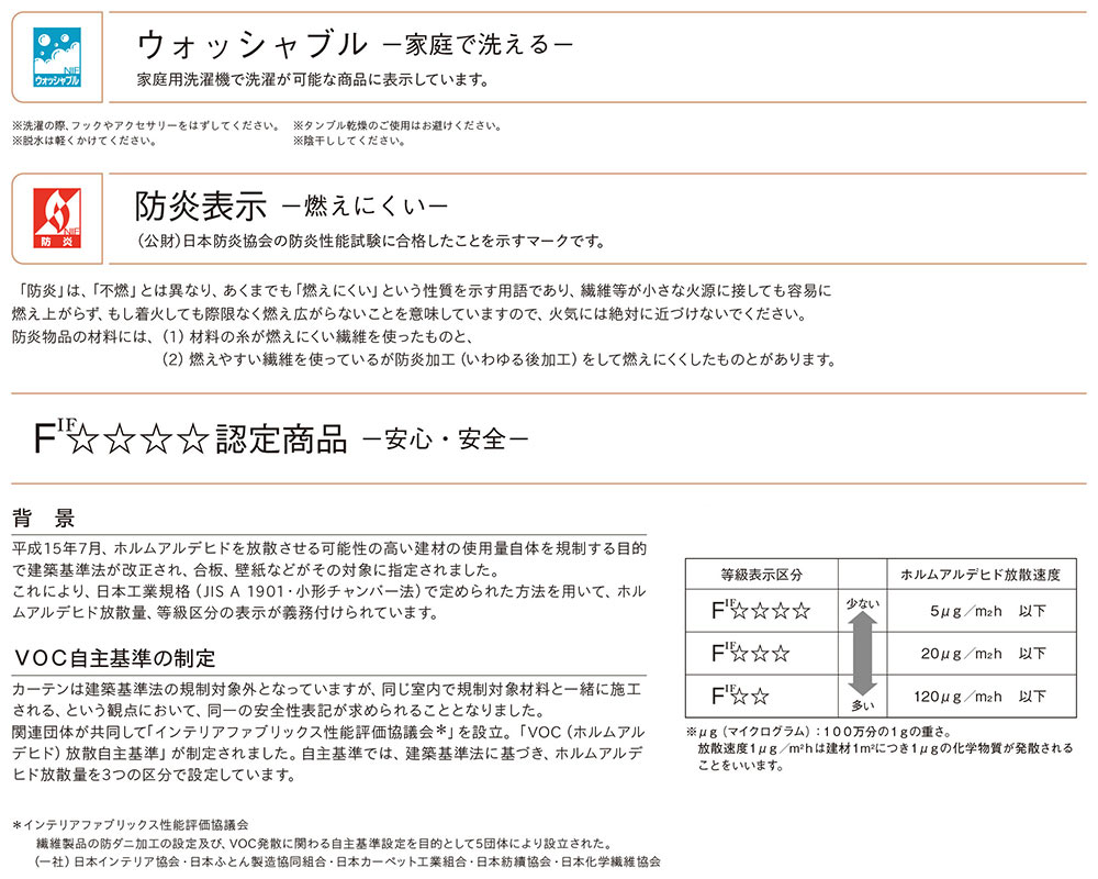 【機能】●ウォッシャブル●F☆☆☆☆●防炎