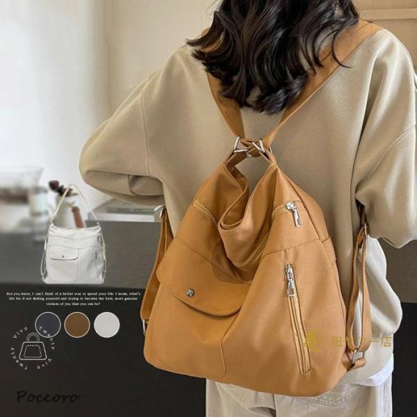 ショルダーバッグ レディース リュック 3way バッグ 斜めがけ 肩掛けバッグ 2way キャンバス 通学バッグ 帆布 大人 大容量 大きめ 外ポケット きれいめ 2way ト