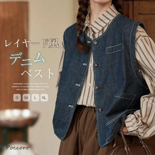 ベスト デニムベスト レディース 春 秋 ショット丈 ノースリーブ トップス ベスト 無地 ジレ トップス レディース ジレ 無袖 春秋 ゆったり シンプル