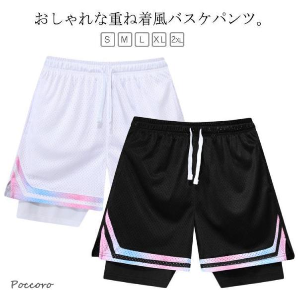 レイヤード バスパン ジャージ 通気性 重ね着風 ジュニア ショートパンツ バスケ バスケパンツ 速乾性 メッシュ パンツ ハー