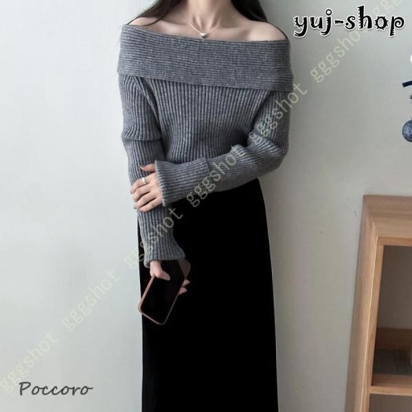 トップス オフショル ニット 肩開き 肩出し オフショルダー インナー 無地 カットソー セーター 長袖 リブ ニットセーター 柔らかい 秋 冬