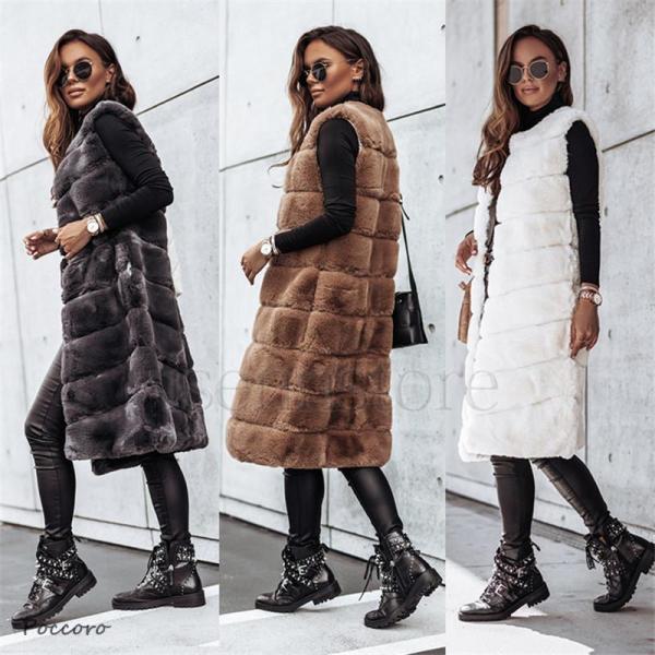 ファーベスト 秋冬 ロング丈 毛皮ベスト レディース チョッキ ベスト 袖なし 毛皮コート フェイクファー アウター トップス もこもこ 防寒