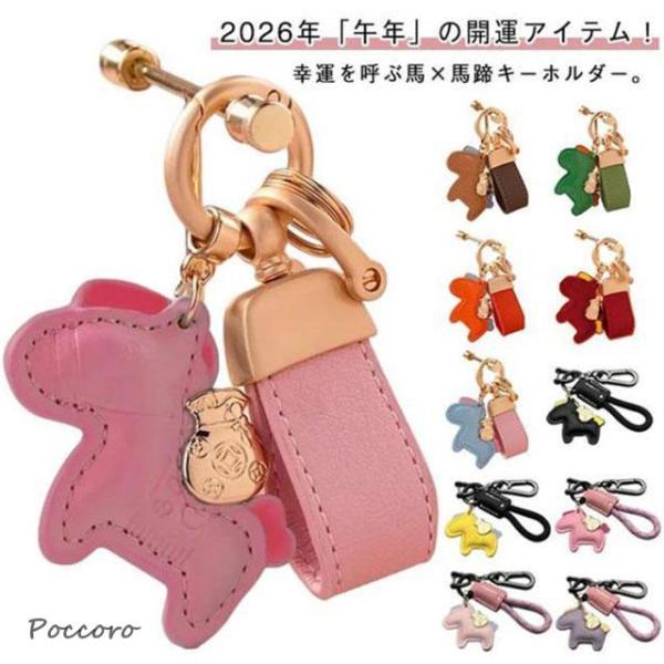 馬キーホルダー 縁起の良い馬と馬蹄 キーホルダー 2026年 午年 馬キーホルダー バッグチャーム 飾り うま 干支 車の鍵 馬年のマスコット 干支動