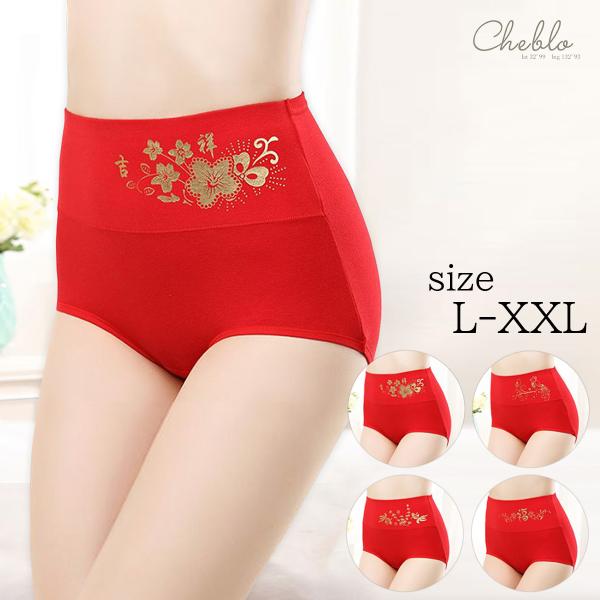赤色ショーツ (単品820円/4枚セットで1枚745円) レディース 赤色 赤パンツ 下着 ハイウエスト すっぽり 大きいサイズ ゲン担ぎ 合格祈願 プレゼント