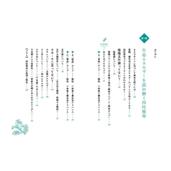 本書は、四柱推命と中医学に基づいた食養生と、体質別季節の養生法を解説した本です。