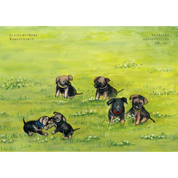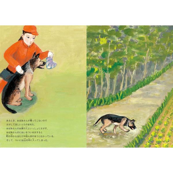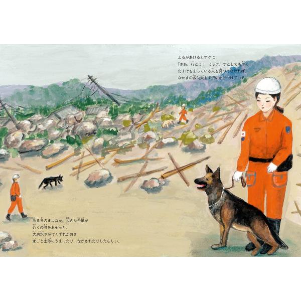 私たちのくらしを支える災害救助犬の活躍の様子がいきいきと描かれています。