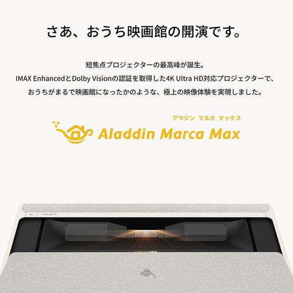 公式店限定レビューで2年保証 Aladdin Marca アラジン マルカ 超短焦点 プロジェクター 家庭用 スピーカー Harman Kardon