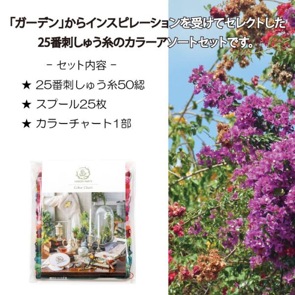 「ガーデン」からインスピレーションを受けてセレクトした25番刺しゅう糸のカラーアソートセットです。
