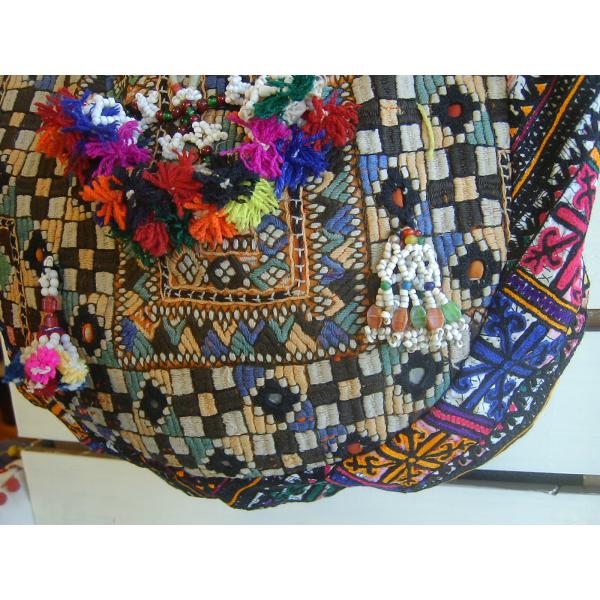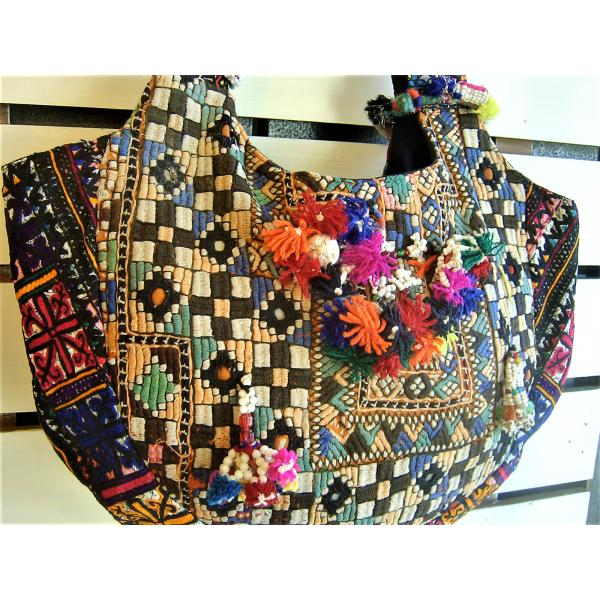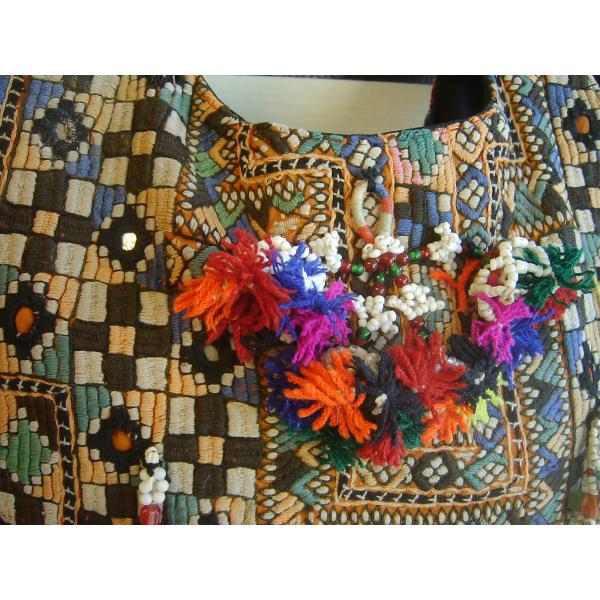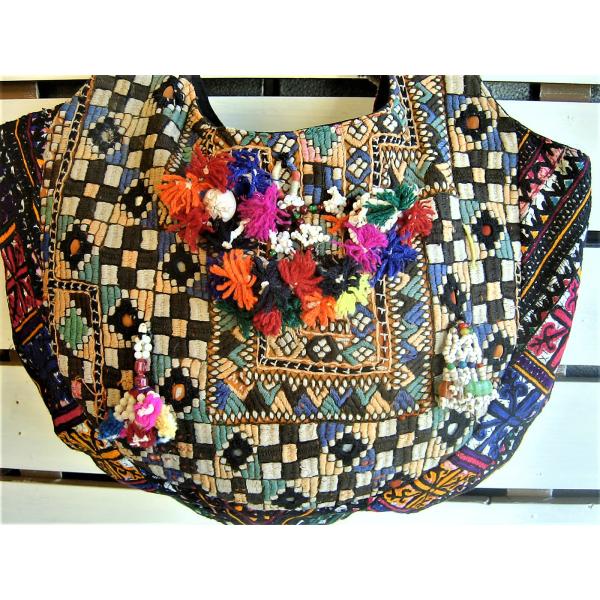 「インドのジプシー」として知られる北インドのバンジャラ部族から収集されたビンテージのバンジャラ生地に、大変複雑なバンジャラ部族の刺繍とビーズやタッセル、ミラーアートで施したとても賑やかにそして手の込んだ世界に一つしかないバッグになります。