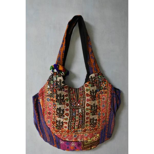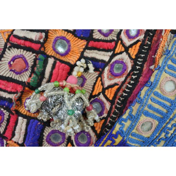 「インドのジプシー」として知られる北インドのバンジャラ部族から収集されたビンテージのバンジャラ生地に、大変複雑なバンジャラ部族の刺繍とビーズやタッセル、ミラーアートで施したとても賑やかにそして手の込んだ世界に一つしかないバッグになります。