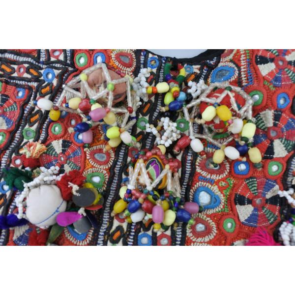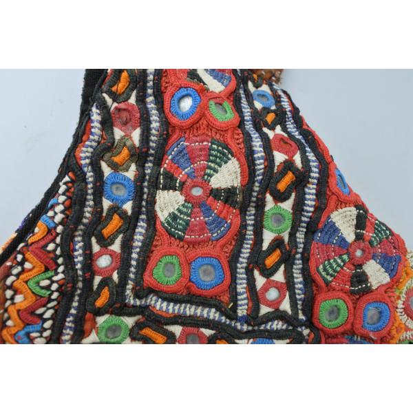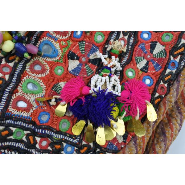 「インドのジプシー」として知られる北インドのバンジャラ部族から収集されたビンテージのバンジャラ生地に、大変複雑なバンジャラ部族の刺繍とビーズやタッセル、ミラーアートで施したとても賑やかにそして手の込んだ世界に一つしかないバッグになります。