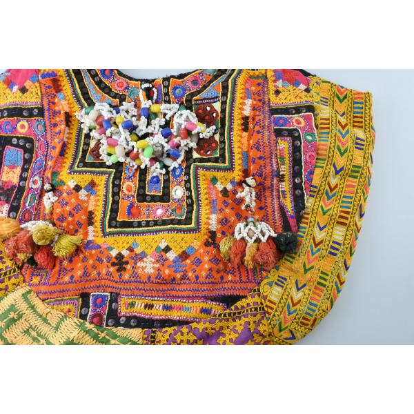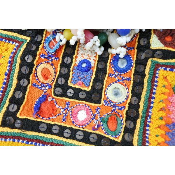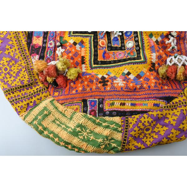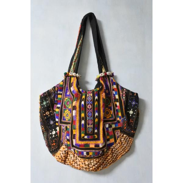 「インドのジプシー」として知られる北インドのバンジャラ部族から収集されたビンテージのバンジャラ生地に、大変複雑なバンジャラ部族の刺繍とビーズやタッセル、ミラーアートで施したとても賑やかにそして手の込んだ世界に一つしかないバッグになります。