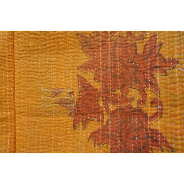 インドの女性は昔から、ベッドカバーやソファーカバー、毛布を作るため、古いサリーを再利用し、重ね合わせて刺し子をして作り上げ、使用しています。
