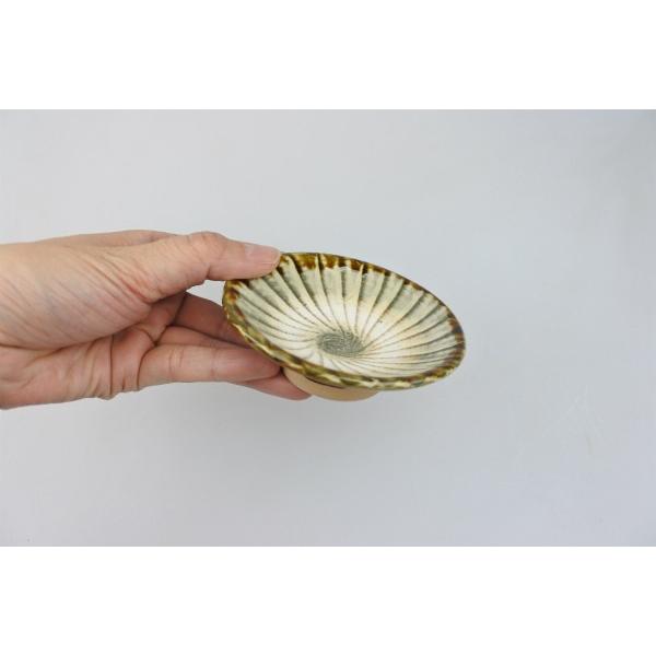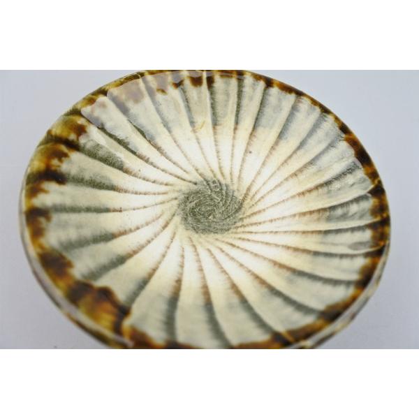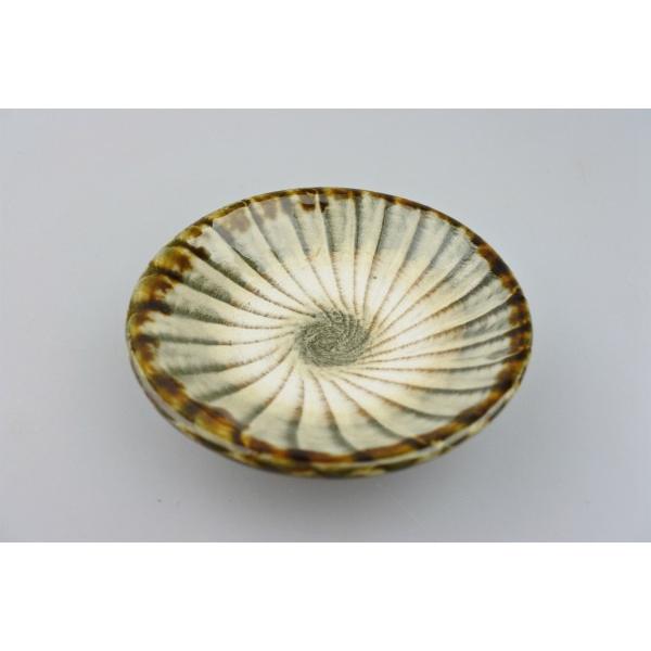小鹿田焼の技法のひとつ「刷毛目(はけめ)」の3寸皿です。漬物皿や、お刺身のお醤油入れにどうぞ。