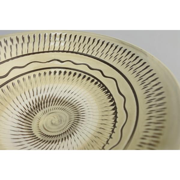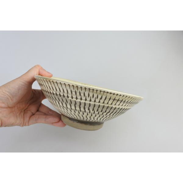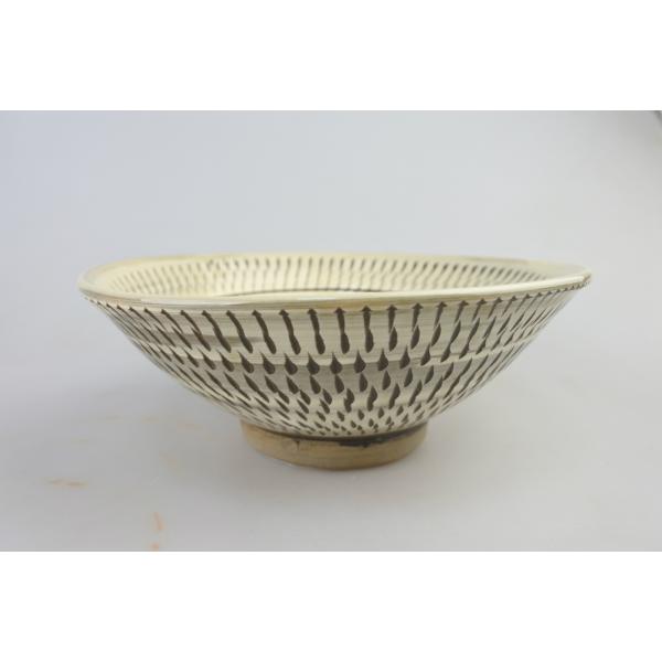 生成りがかった白地にこげ茶の飛び鉋の模様が目を見張ります。1人前のうどんやお蕎麦、ラーメンに。また、煮物などの盛鉢としても重宝されます。