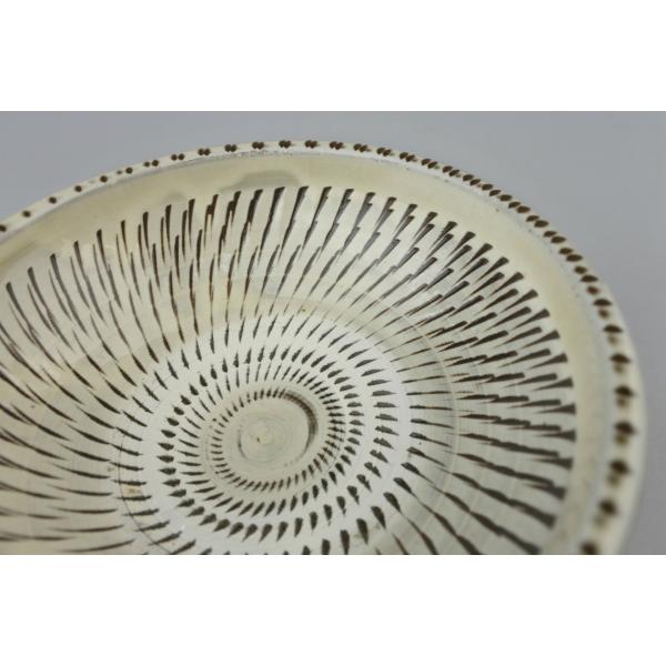 一番代表的でポピュラーな技法「トビカンナ」の4寸切立皿です。全体的に乳白色がかっていて、ふちがあるのでちょっとした汁物も安心です。取り皿にもお勧めです。