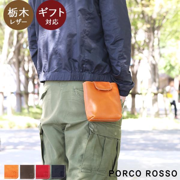 ベルトポーチ メンズ レディース 革 本革 スマホポーチ 小型 栃木レザー ブランド ポルコロッソ 名入れ ウエストポーチ 日本製 [nouki3]