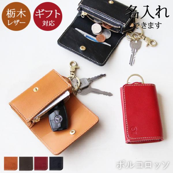 キーケース メンズ レディース スマートキー 小銭入れ カードも入る 本革 革 車の鍵 ブランド ポルコロッソ 栃木レザー 名入れ 革婚式 プレゼント[sokunou]