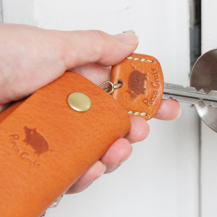ポルコロッソオリジナルの栃木レザーで製作した、日本製、クラフトキーカバー。 一つとして同じものが無い、革の個性豊かな表情が魅力的な一品。クラフト感のある革の仕立て方にカジュアル感が香ります。