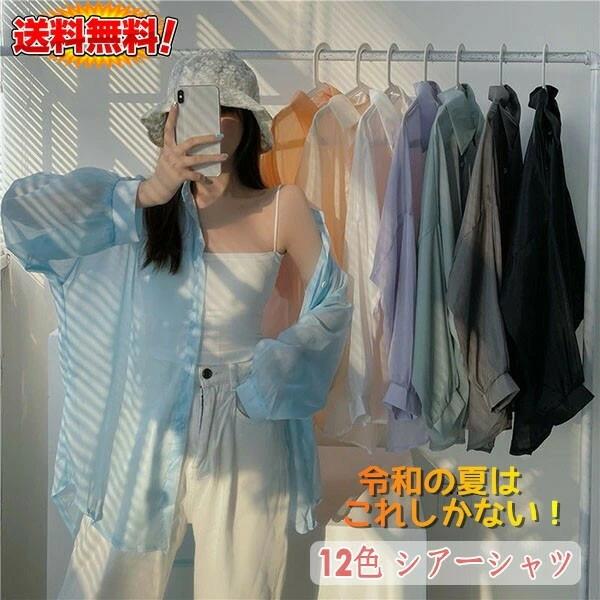 【送料無料!】12色 シアーシャツ 透け感 レディース 日焼け止め ブラウス シースルー シンプル 日焼け対策 冷房対策 羽織 夏物
