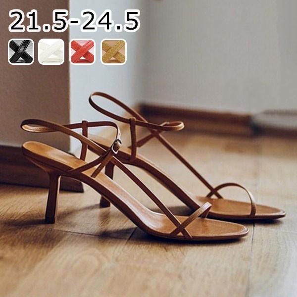 【ポイント5倍】華奢ストラップサンダル ピンヒールヒール ローヒール ヒールサンダル アンクルストラップ レッド ブラウン