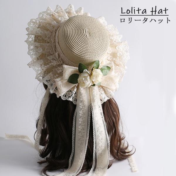 ロリータ ハット リボン付き レース 花飾り クラシカル 甘ロリ 姫系 コスプレ 小物 アクセサリー 撮影用 春 夏 秋 ファッション帽子