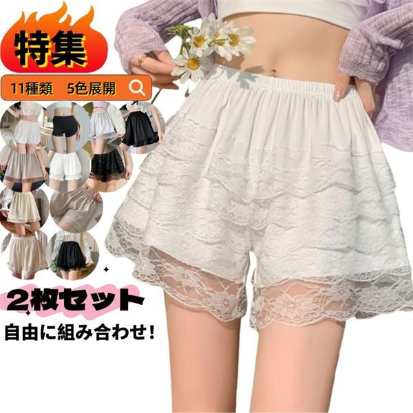 二枚セット インナーパンツ レギンス ショート丈 レディース ショートレギンス 3分丈 無地 シンプル レース ペチコート 夏 ペチパンツ ルームウェア 部屋着