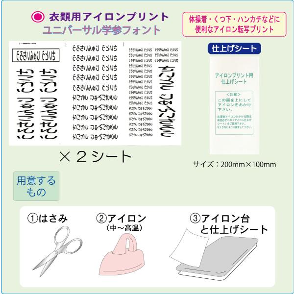 体操着・ハンカチ・靴下などの衣類用おなまえアイロンプリント