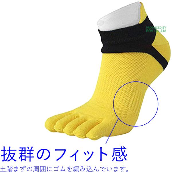 土踏まずの周囲にゴムを編み込んでいるので、フィット感が抜群。靴の横ズレによる摩擦を軽減します。
