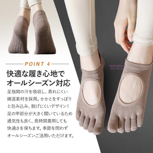 ヨガ ソックス ヨガ靴下 滑り止め付き 五本指ソックス 綿混 2足