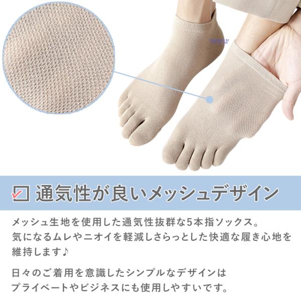 メッシュデザインの通気性抜群なメンズ用5本指ソックスです。