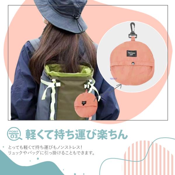 バッグやポケットに楽々収まるかさばらないパッカブルハット。
