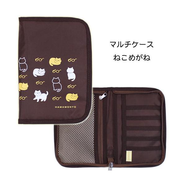 マルチケース「ねこめがね」 ポーチ お薬手帳 保険証ケース 母子手帳ケース 通帳 整理整頓 コンパクト収納 小物収納 濱文様 ケイス