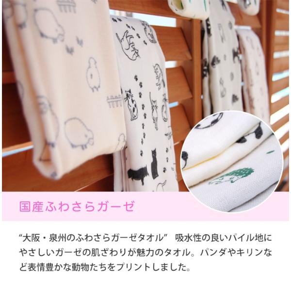 フェイスタオル パンダ ペンギン 猫 ひつじ ハリネズミ キリン コアラ ハムスター 鹿 恐竜 動物柄 アニマル かわいい ガーゼタオル 薄手 今治タオル 柔らかい