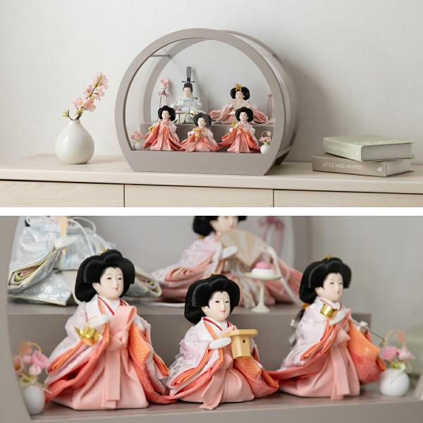 雛人形 コンパクト ケース飾り おしゃれ モダン かわいい インテリア ふるうる はなのうた 五人飾り 丸型ケースL モカ 無地 sonoca そのか 最新 今どき