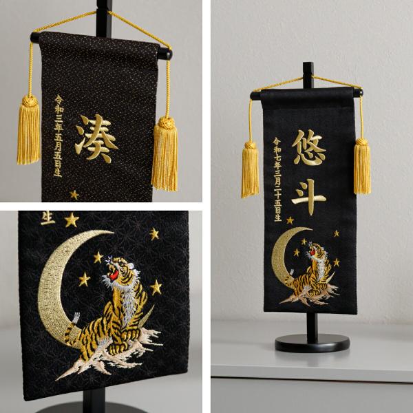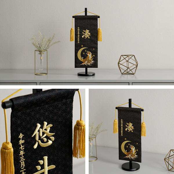 兜飾り 男 タペストリー 名前 札 白 黒 高級 プレゼント