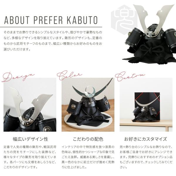 五月人形 コンパクト おしゃれ 兜飾り 兜 モダン インテリア 5月人形 ぷりふあ 五月人形 DARKURO 半月 兜5種類 飾り台5種類 平飾り オプション ケース 初節句