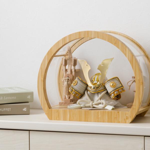 五月人形 ケース飾り コンパクト おしゃれ インテリア 兜 モダン 5月人形 最新 今どき 兜飾り ROITOKA 縁斗 丸型ケース飾り こどもの日 男の子 初節句 木製