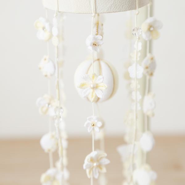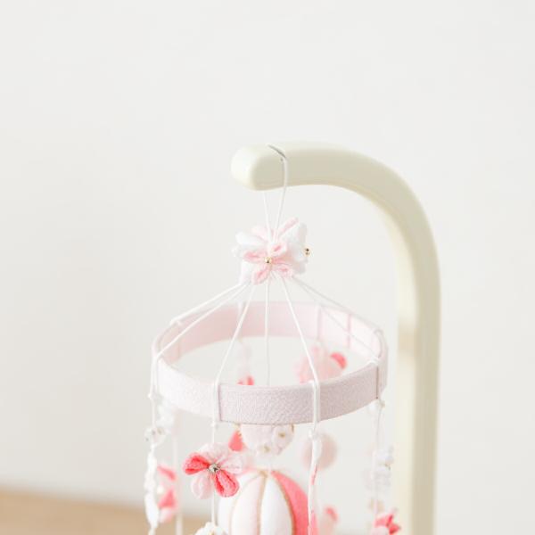 華やかな佇まいで特別な日を彩る、コンパクトでかわいいつるし飾り。たくさんのお花や扇子の細工物が賑やかな風合いです。真ん中には女の子の縁起物とされる手毬の細工物をあしらいました。デザインは選べる3種類。清廉な「ホワイト」、可愛い「ピンク」、おしゃれな「ミックス」をご用意しました。「衣食住に困らないように」という願いを込めた吊るし雛。現代の空間に自然に馴染むよう、インテリアのように楽しめるモダンスタイルに仕上げました。小さいサイズのつるし雛は飾りやすく、お手持ちのお雛様やひな飾りと並べても場所をとりません。可愛いお子さまの初節句のお祝いや、ギフトにもおすすめです。