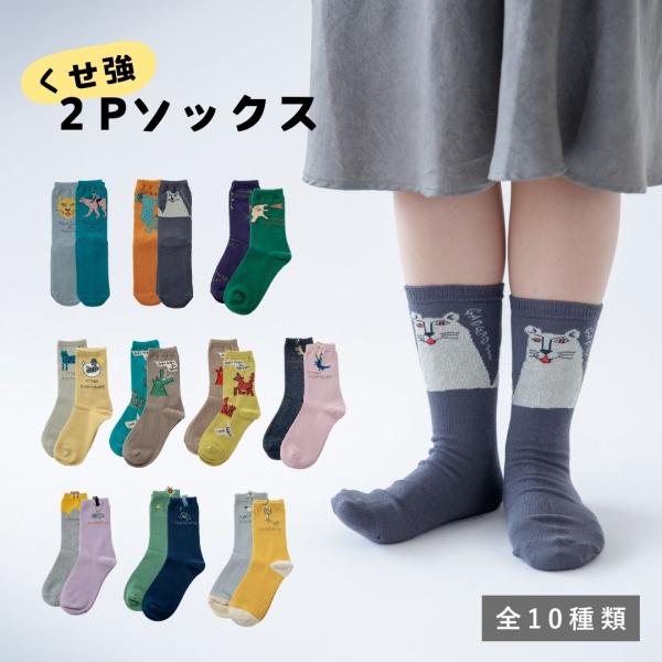 靴下 レディース セット おしゃれ 柄 柄物 ブランド 通年 オールシーズン くせ強2Pソックス 2足セット 台湾製 ギフト プレゼント グレー グリーン イエロー ネイ