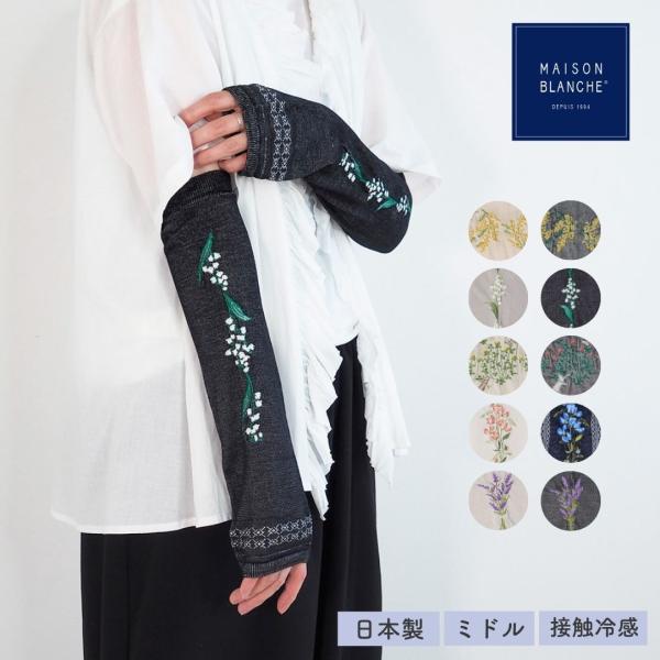 maison blanche メゾンブランシュ おさんぽアームカバー ミドル丈 接触冷感 アームカバー 刺繍 冷感 かわいい レディース 日本製 国産 ひんやり 腕カバー おしゃ