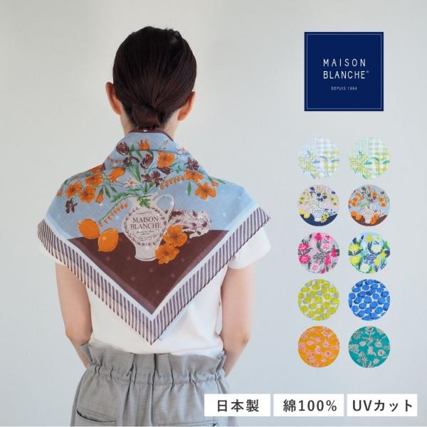maison blanche メゾンブランシュ おさんぽスカーフ uvカット スカーフ 大判 正方形 綿100% 日本製 国産 レディース 春夏 紫外線カット おしゃれ 柄 ギフト プ