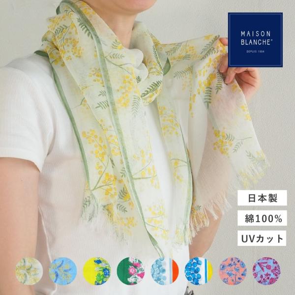 maison blanche メゾンブランシュ おさんぽストール uv 接触冷感 ストール 大判 薄手 春夏 レディース 綿 日本製 国産 紫外線カット UVカット 90% 柄 おしゃれ