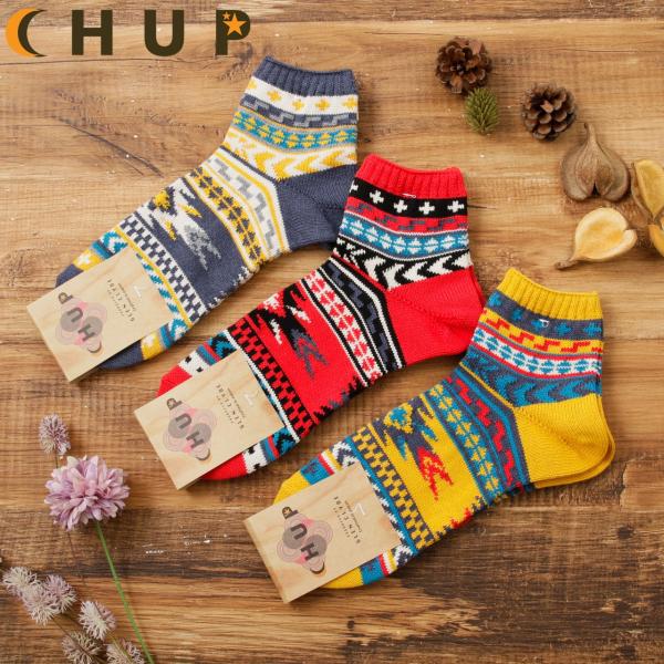 CHUP MUERTO チュプ ムエルト 靴下 ソックス メンズ 柄物 おしゃれ ブランド 綿 日本製 ギフト プレゼント レッド イエロー インディゴ 25-27.5cm Ll105